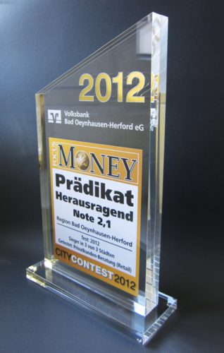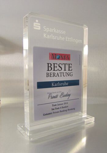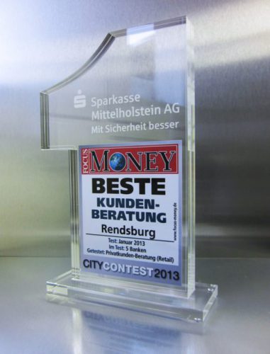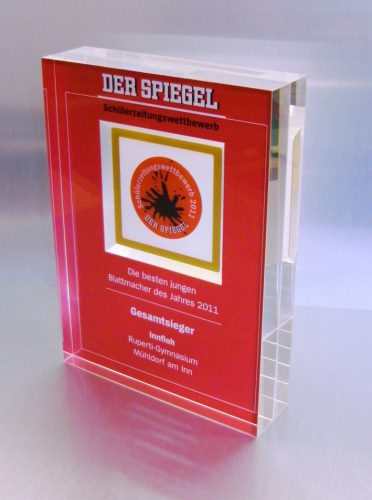 Mit innenliegender Lasergravur, auch farbig gefüllt.